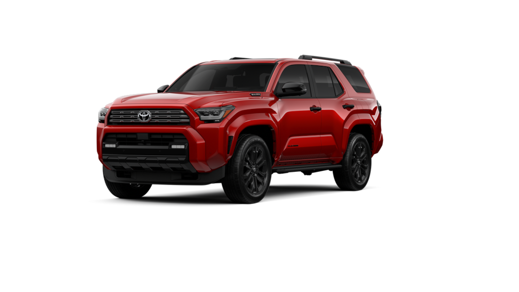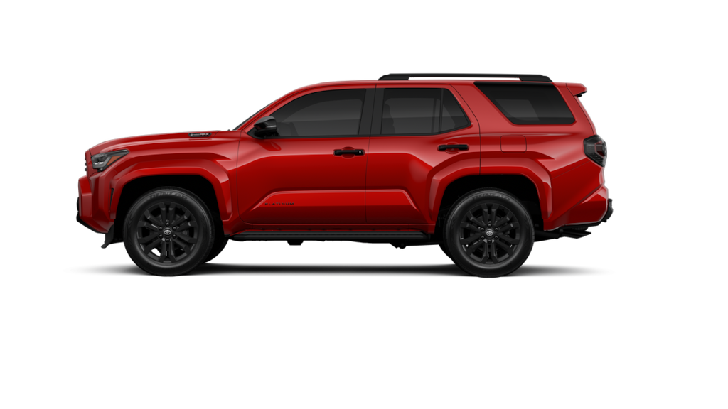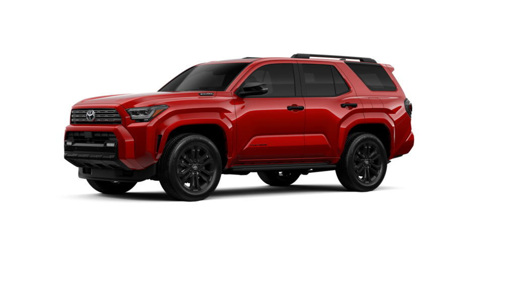 • Dark-chrome tri-bar grille; gloss-black mirror caps and door handles; color-keyed overfenders and rear spoiler; gloss-black "platinum" and "4runner" badges.